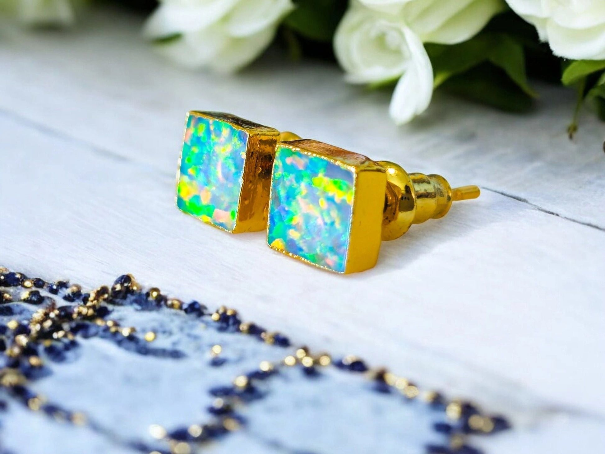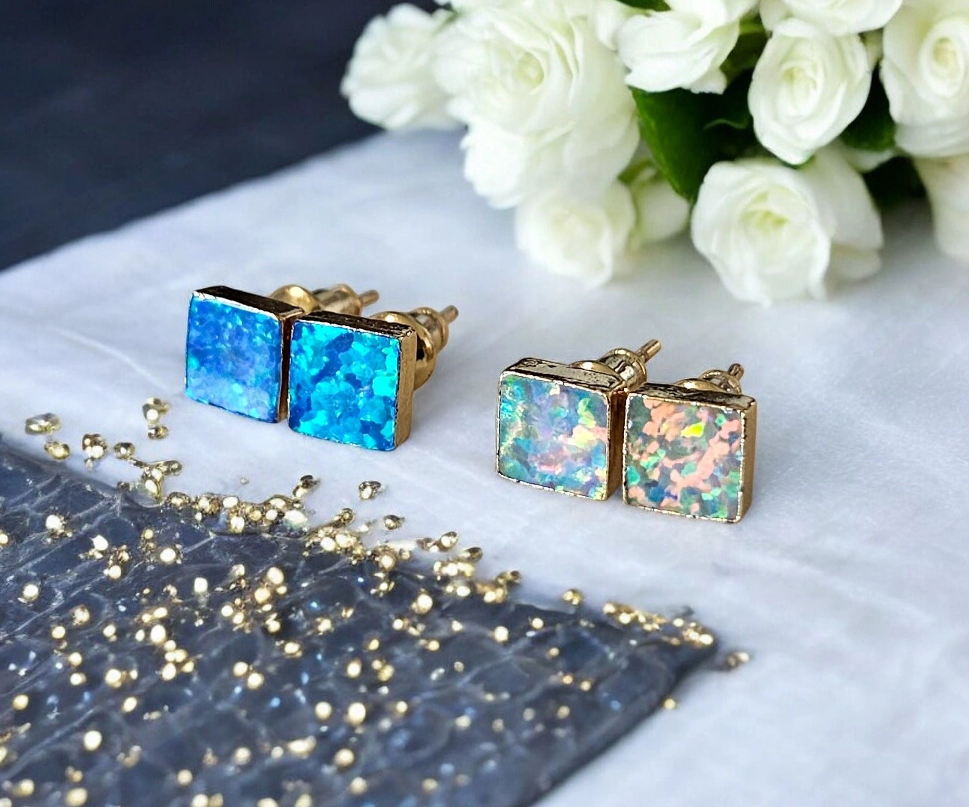 Elevate your style with the Blue & Green Opal Square Earrings—crafted to radiate both elegance and meaning. Featuring vibrant opals that shimmer with blue and green hues, these earrings symbolize resilience, brilliance, and the power to shine through every season of life.