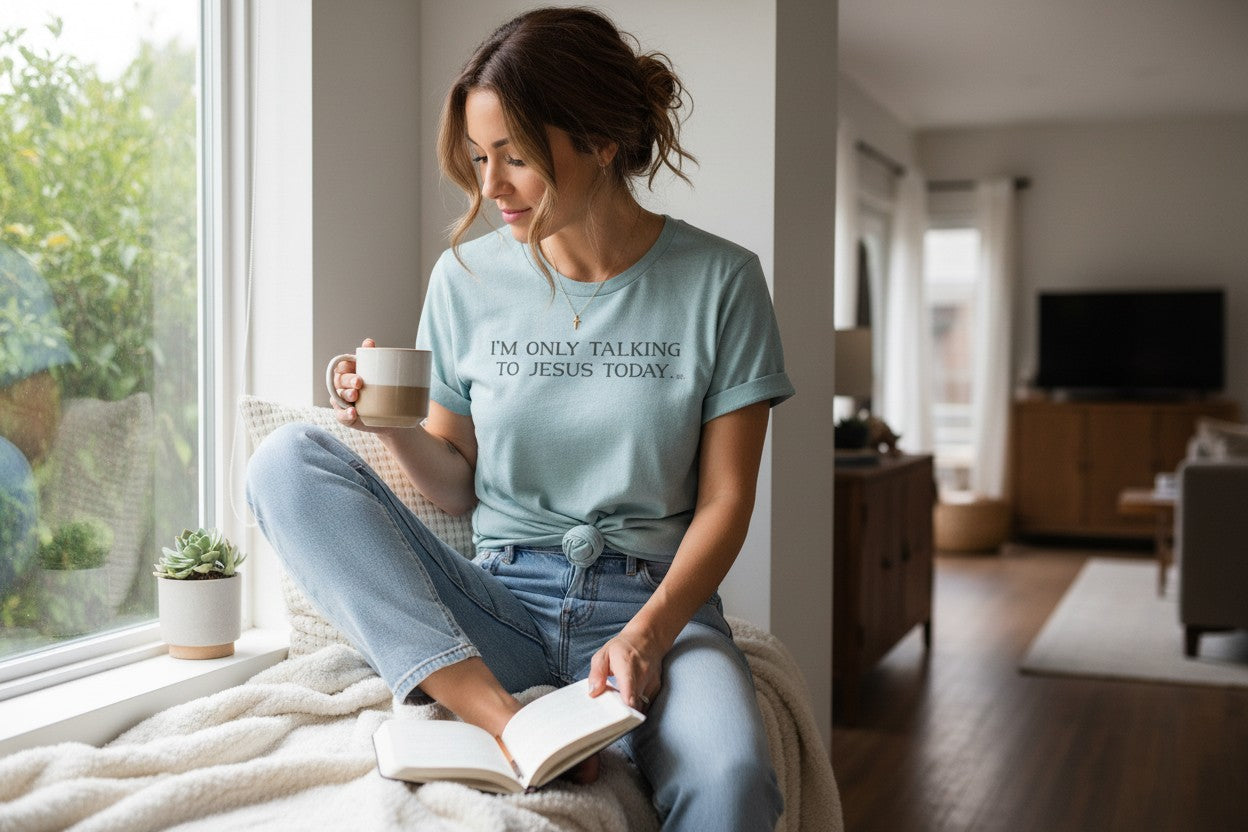 A soft and uplifting everyday tee designed to bring a little peace into even the busiest mama moments. This Dusty Blue unisex shirt features “I’m only talking to Jesus today” on an awesomely soft combed and ring spun cotton blend that feels like your favorite worn-in tee from day one.