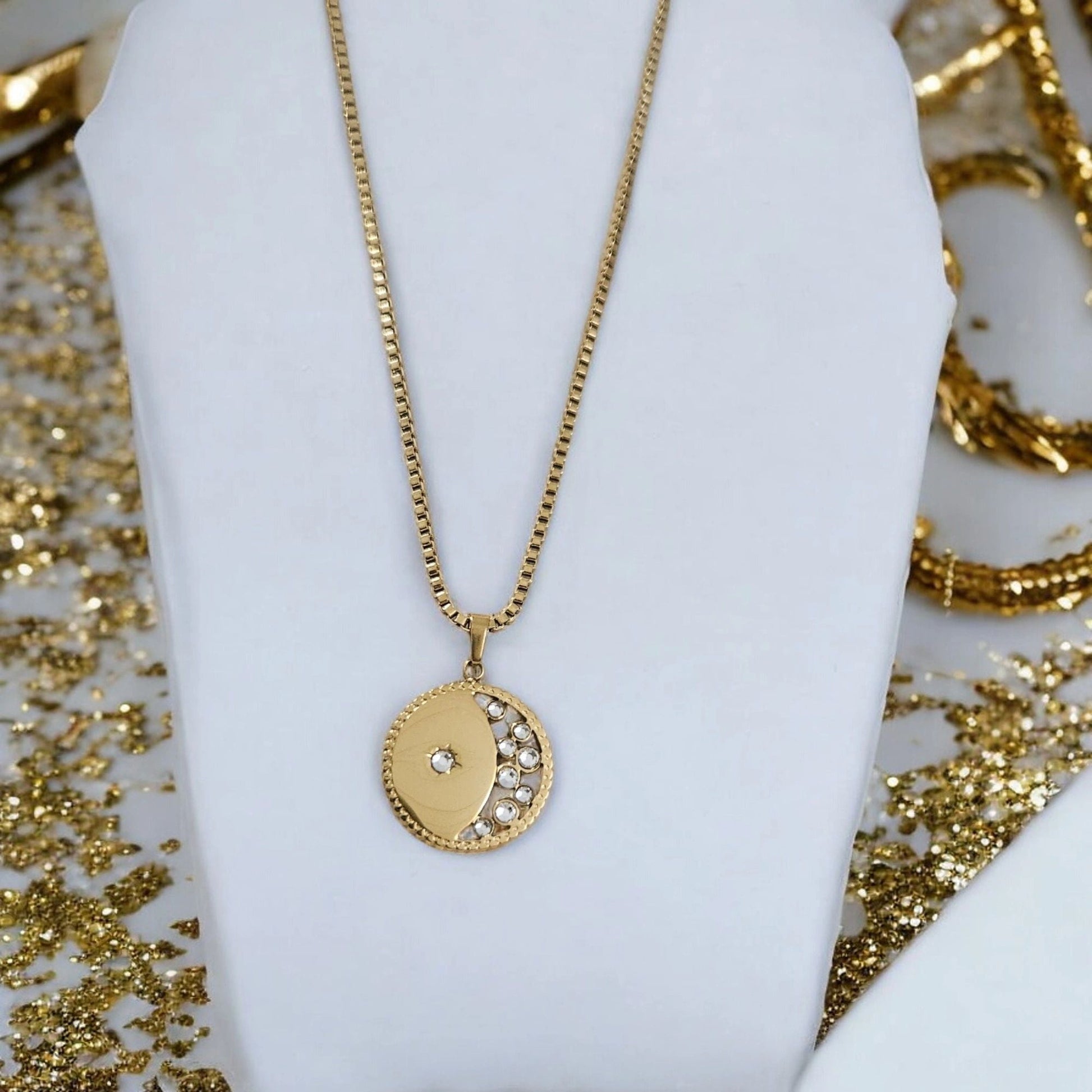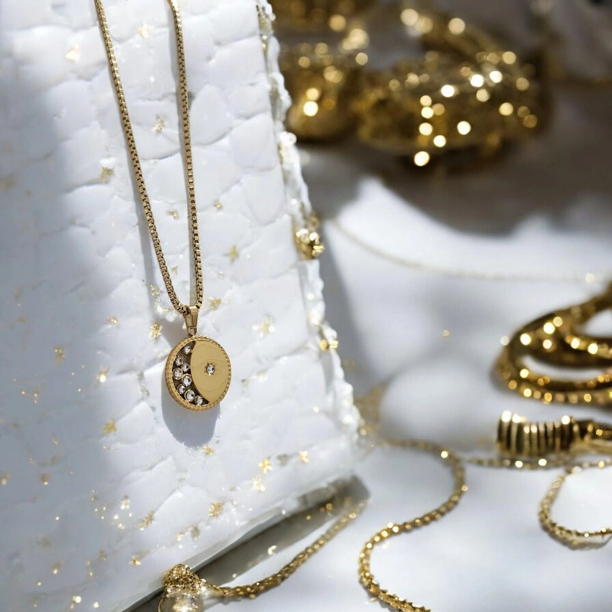 The Solar Reflection Necklace combines timeless elegance with celestial glow. Crafted in 18k gold-filled metal and featuring a brilliant zircon gemstone, this piece captures the light like no other—designed to shimmer with every movement.