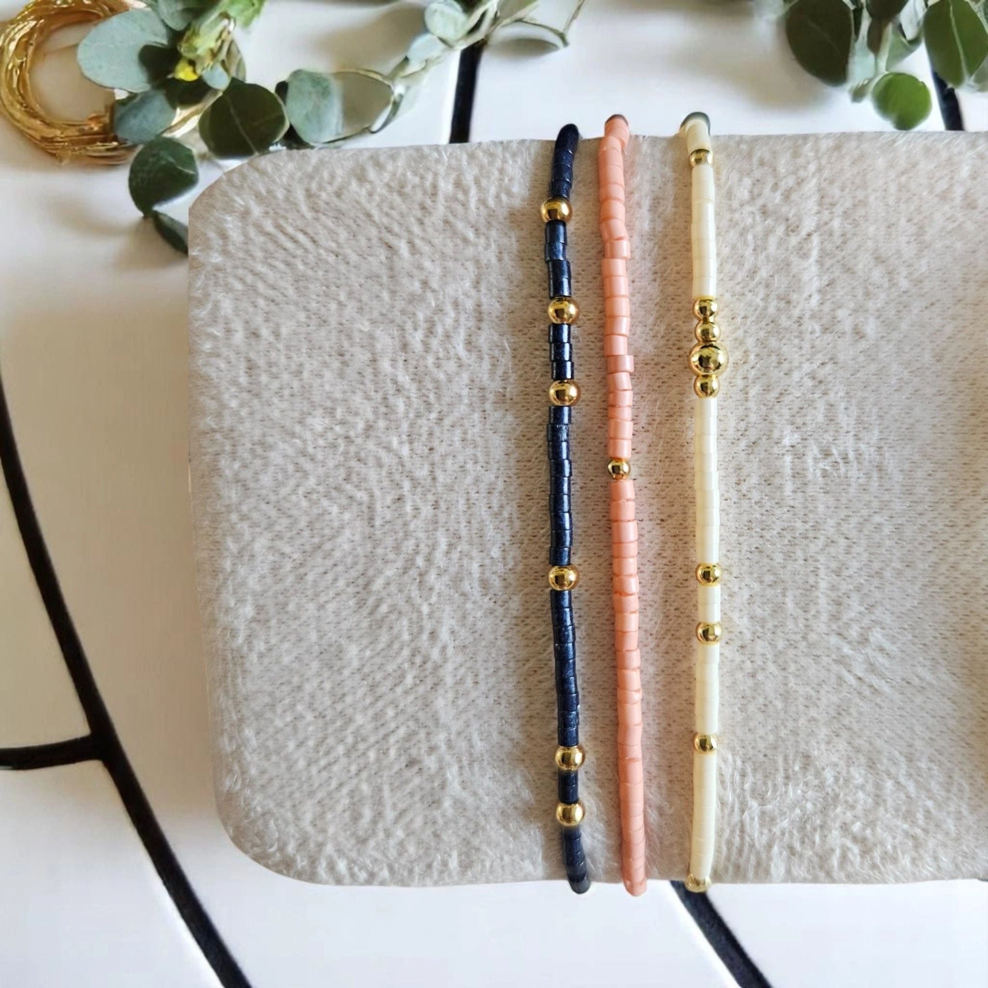 - 2 Miyuki Glass Seed Bead Bracelets accented with gold beadsâcelebrating grace in everyday moments.